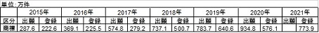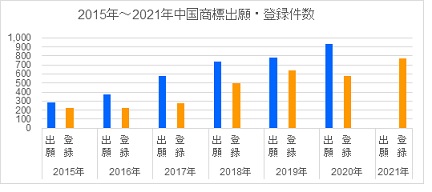 図 2:2015 年~2021 年中国商標出願・登録件数